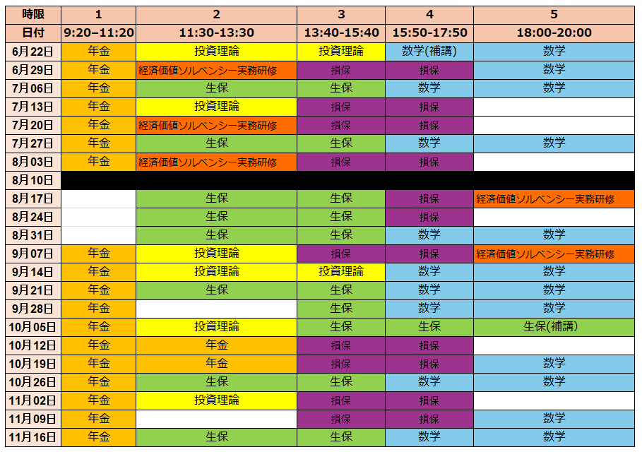 | 生保数理 | 全10コマ | ¥46,200 | ¥33,000 |